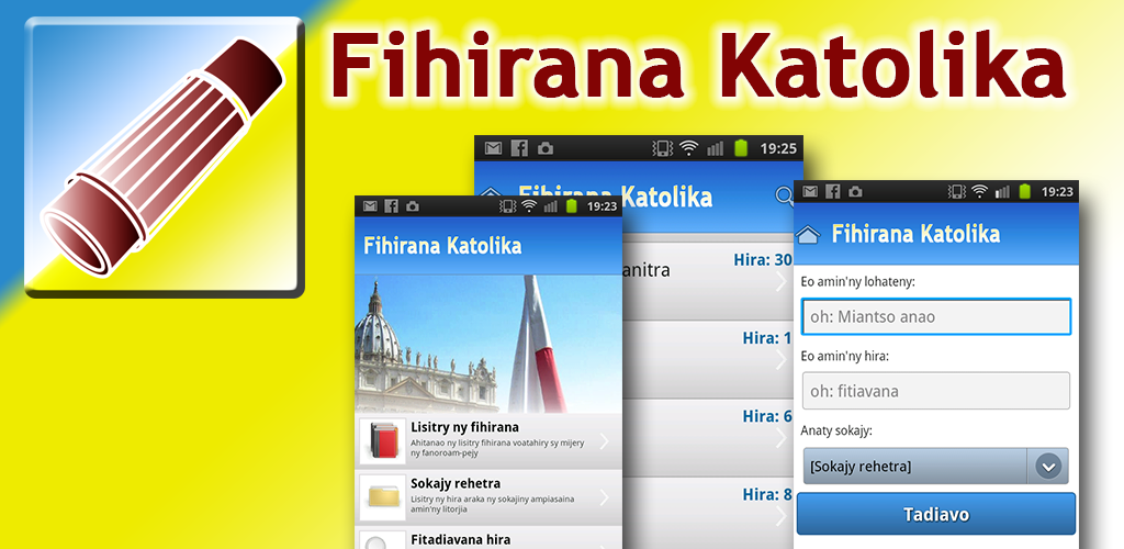 Ity dikanteny ity dia nalaina avy amin'ny baiboly vita tamin'ny 1938 rehefa avy nahitsy sy namboarina hifanaraka amin'ny fomba fiteny ankehitriny. Bible, fihirana sy vakiteny isan'andro ao anaty application tokana Apr 24, 2021 · download ny baiboly masina apk 3.1 for android. Catholic translation of the madagascan bible Apr 26, 2021 · download the latest version of baiboly for android. We fixed crashes, improved performance and … New more user friendly design. Download latest version of baiboly (malagasy holy bible) apk for pc or android 2021. Catholic bible in malagasy version. Baiboly katolika amin'ny teny malagasy. Ny teny hoe baiboly (katolika na protestanta) dia ilay boky izay inoan'ny kristianina ho tenin'andriamanitra. Baiboly (malagasy bible 1865) ny teny hoe baiboly (katolika na protestanta) dia ilay boky izay inoanny kristianina ho teninandriamanitra. Aug 31, 2018 · download baiboly apk 5.1.0 for android.